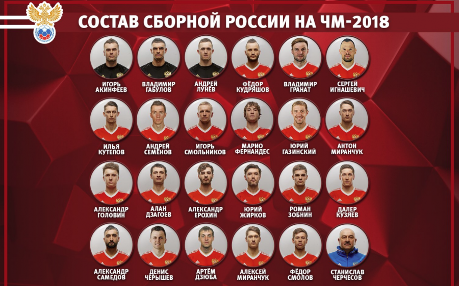 Тренерский штаб сборной России по футболу обнародовал окончательный состав команды для участия в чемпионате мира. В основной список вошли 23 футболиста, которые сыграют на чемпионате мира 2018 года.