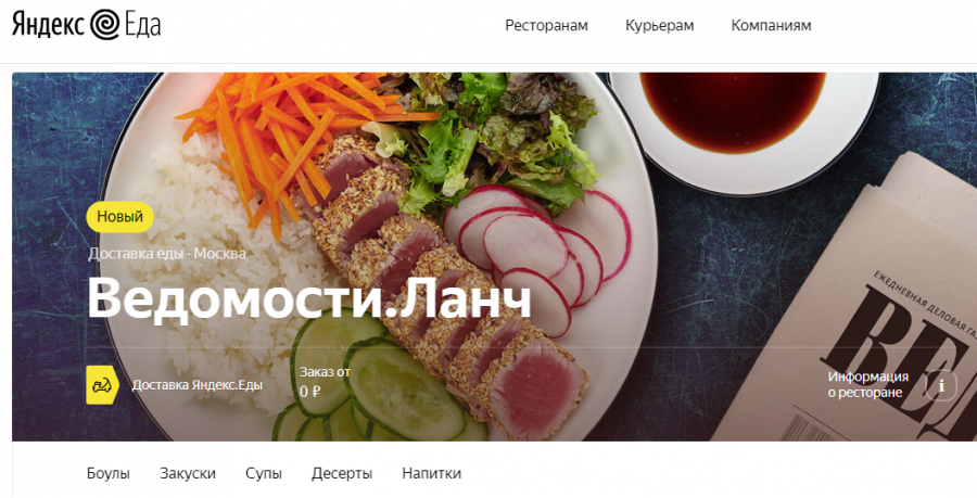 Кажется получилось вкусно — но мое мнение значения не имеет, имеет — ваше. Работает это пока в пределах третьего кольца. Заказ через «Яндекс.Еду», ссылка на меню ниже, или просто в их приложении наберите «Ведомости.Ланч».