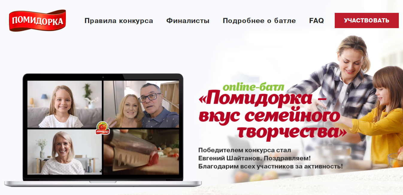 Проект стартовал в конце апреля 2020 года. На лендинге акции нужно было рассказать о своей семье и о том, что вас объединяет, а еще и написать, сколько близких и родных вы попробуете собрать за одним онлайн-столом ТМ «Помидорка». Привлекать к участию в проекте можно было родственников со всего мира и, конечно, друзей.