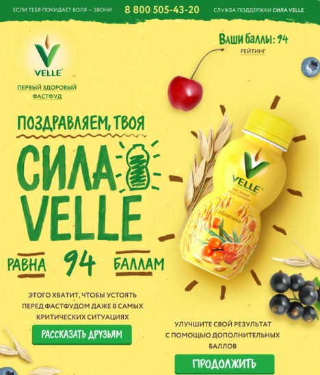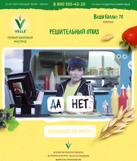 Креативное агентство FIRMA AGENCY разработало приложение в Facebook для овсяных продуктов Velle. Приложение «Тренируй силу Velle» призывает пользователей переходить на здоровый фастфуд. Креаторы напомнили, что есть Velle, который можно выпить быстро и с пользой для организма.?