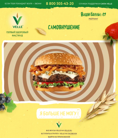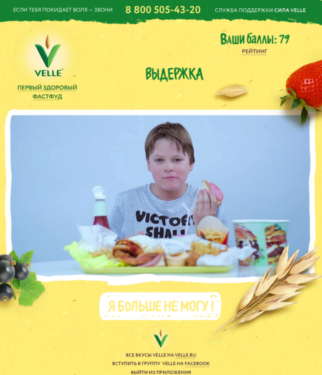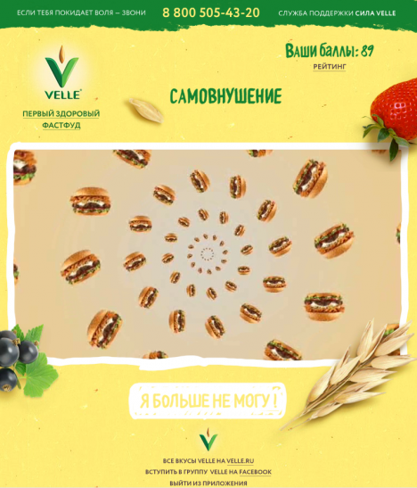 Участникам придется противостоять продавщице фатсфуда, мальчику-обжоре, а также выдержать гипноз – за каждое пройденное испытание пользователям начисляются баллы, самые активные в конце недели получат призы от Velle.