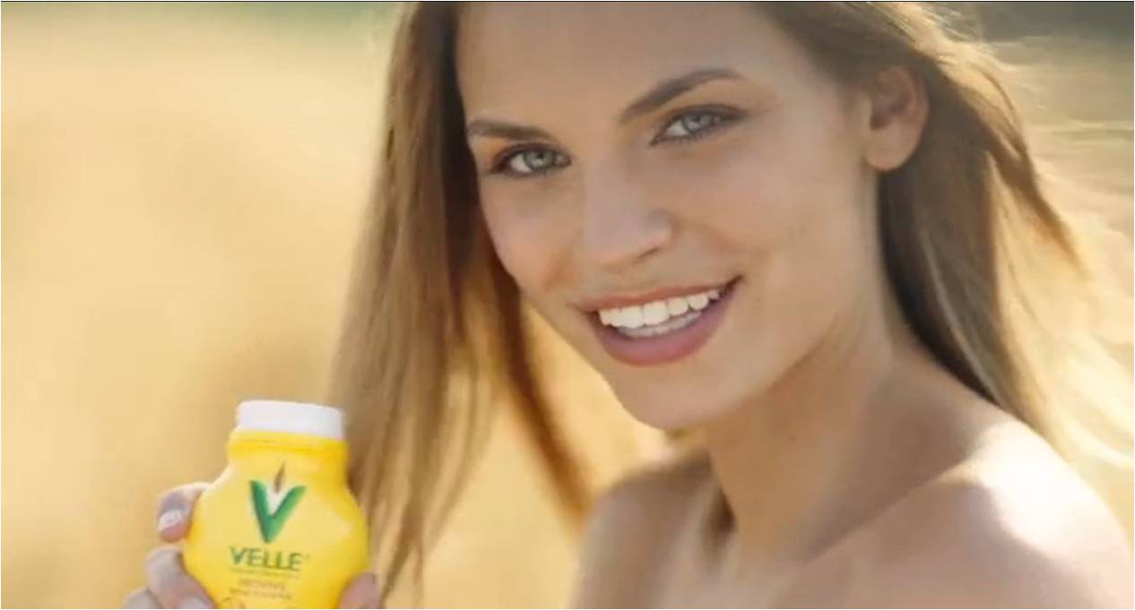 В видео, которое рекламирует экологически чистый продукт VELLE, акцент сделан на показе природных пейзажей, ягод, и главной героини, которую сыграла модель и актириса Кармен Брамбилла.