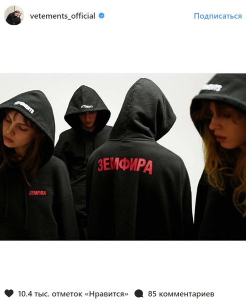 Латвийский бренд QooQoo выпустил майки с принтом «Красава» и легинсами «Творю чудеса», а молодежная марка Демны Гвасалии Vetements знакомит Европу с самыми яркими представителями русского рока с помощью толстовок с надписью «Земфира».