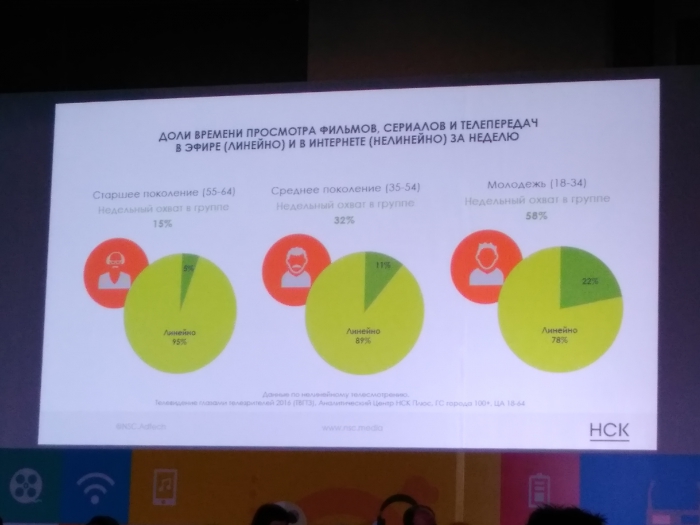 Александр Лигер, заместитель генерального директора по развитию НСК, предложил по-другому взглянуть на вопрос: «Люди смотрят интернет? Люди не могут смотреть интернет, они смотрят контент - через провода, через эфир, но не сам интернет. И это принципиально. Борьбы как таковой нет. ТВ и интернет - про разное: эфир - линейное потребление, интернет - нелинейное».