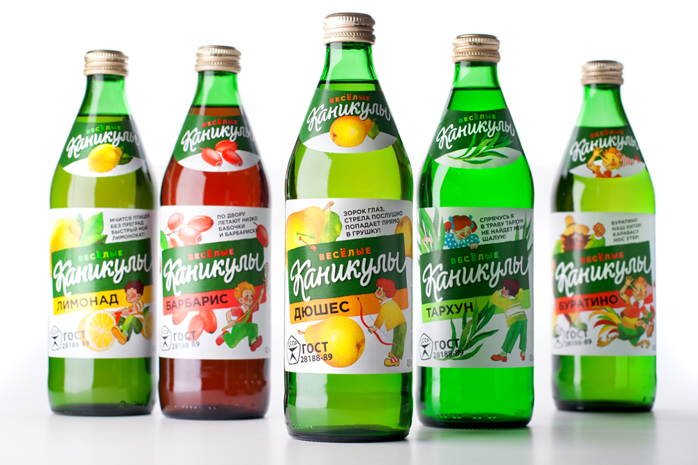 Компания «БрянскСпиртПром» выпустила на рынок ностальгический бренд лимонадов «Весёлые каникулы». Комплексную разработку осуществила брендинговая компания POLARIS.