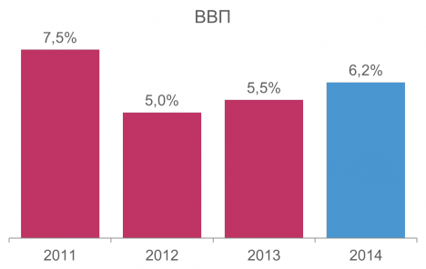 Меры по удержанию обменного курса дали экономике возможность стабильно расти. В 2013 г. рост ВВП составил около 5,5 процентных пунктов.