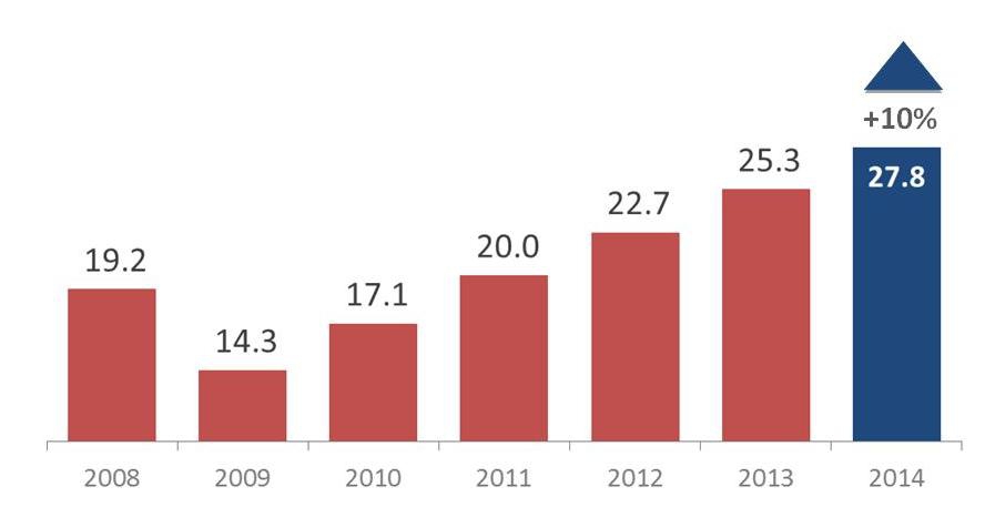 Как известно, в Казахстане 11 февраля 2014 г. произошла девальвация. Тенге подешевел по отношению к доллару США на 20% (185 тенге vs 155 тенге за доллар США). Между тем, мы сохраняем позитивный сценарий развития телерекламного сегмента, опираясь на ряд факторов.