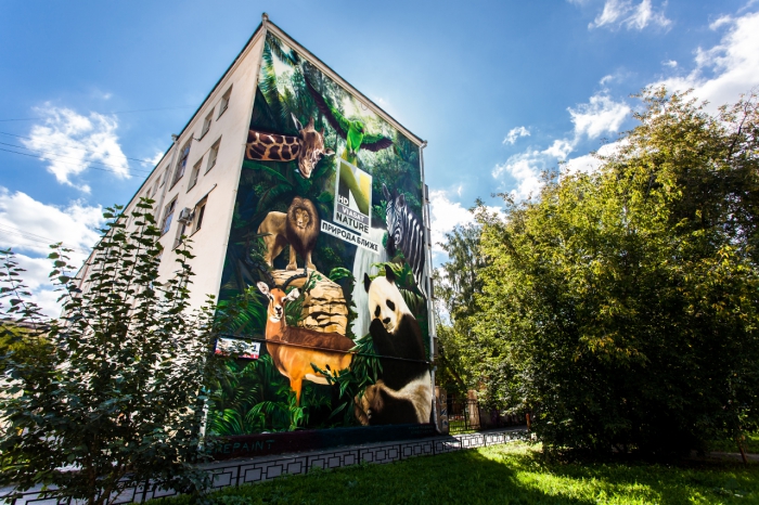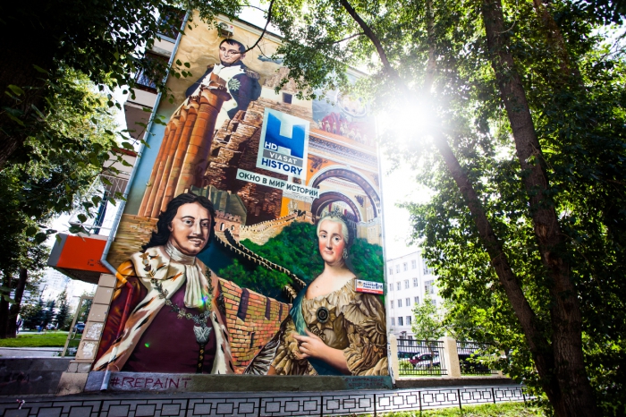 Жилые дома в центре Екатеринбурга стали полотнами для масштабных образцов стрит арта. На торцевых стенах зданий появились огромные коллажи с тематикой дикой природы и исторических персонажей, символизирующие направленность телеканалов Viasat Nature и Viasat History. Однотонный пейзаж мегаполиса был раскрашен силами рекламной группы Deltaplan и агентства Streetart в рамках фестиваля «Стенограффия - 2014» при поддержке группы компаний Viasat.