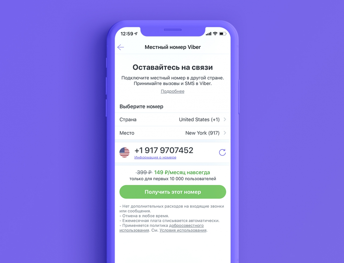 Услуга уже доступна доступна в Великобритании, США и Канаде, а в ближайшем будущем появится и в других странах. На местный номер Viber можно получить неограниченное количество звонков и SMS-сообщений. Чтобы воспользоваться сервисом, пользователь должен открыть меню «Еще» в приложении Viber и выбрать «Местный номер Viber».
