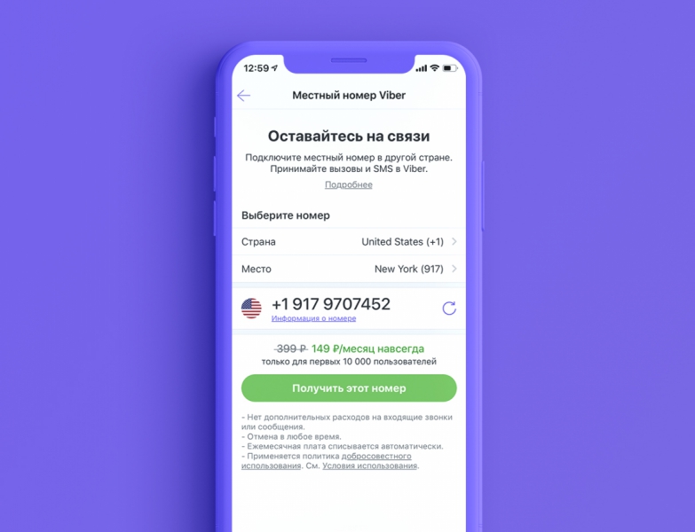 Viber запустил сервис «Местный номер» (Viber Local Number), предназначенный для путешественников, экспатов и бизнесменов. Новая функция позволяет оформить подписку на номер телефона, чтобы даже абоненты, у которых нет Viber, могли звонить и отправлять на него SMS по «домашним» тарифам из любой точки мира.