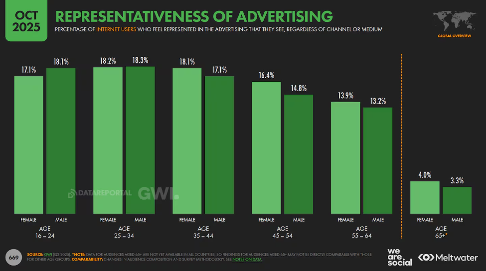 Еще одна проблема — слабая репрезентативность рекламы. Лишь малое число пользователей считают, что реклама отражает их интересы, а среди поколения Z — таких только 20%. При том что молодежь проводит в соцсетях по 17 часов в неделю, значительная часть рекламных сообщений оказывается нерелевантной. И это, несмотря на значительные усилия брендов, направленные на то, чтобы охватить их интересы.