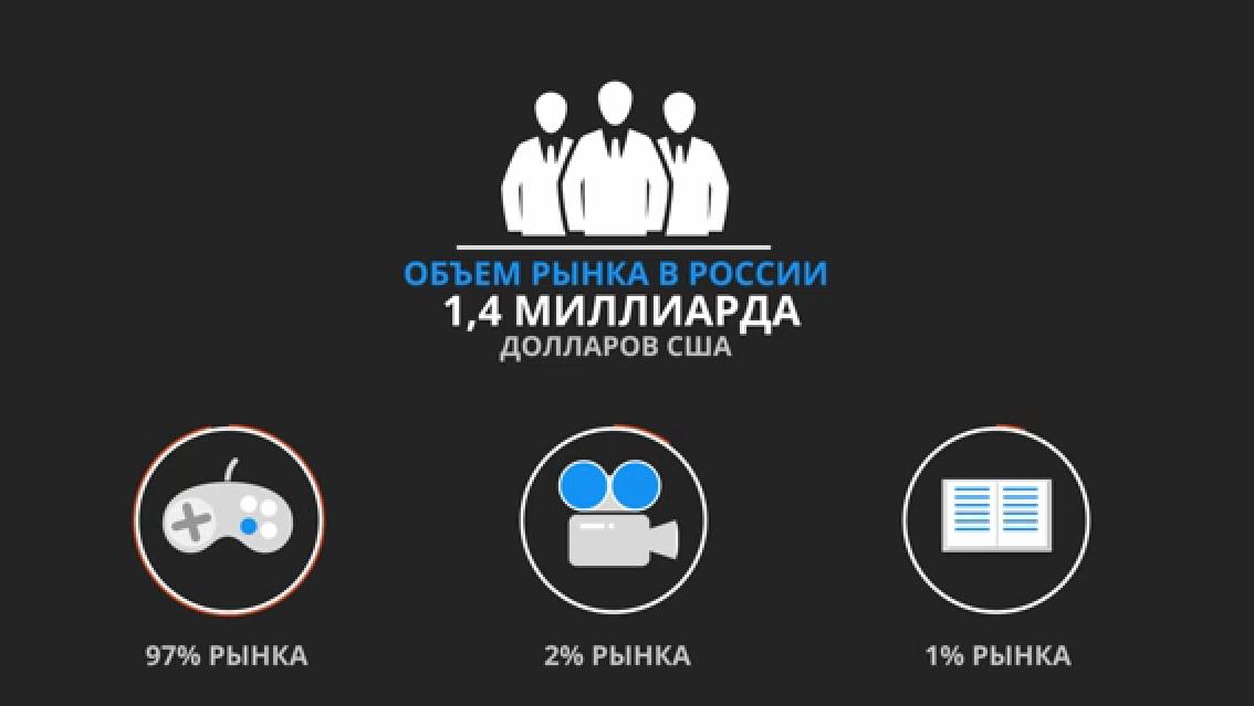 Игры остаются главным трендом на российском рынке цифровых товаров. На них приходится основная часть локального цифрового контента — выручка этого сегмента в прошлом году составила 35,4 млрд руб. Продажи других видов контента — музыки, видео и книг — в целом достигли 6,5 млрд руб. Сейчас рынок игр вышел на насыщение, и главный рост Digital Goods будет обеспечен за счет видео-контента и музыки, считает Плуготаренко.