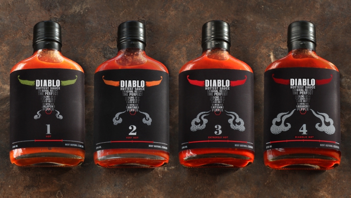 Брендинговое агентство Viewpoint создало дизайн для линейки соусов Diablo. Вдохновением послужил образ разъяренного быка, у которого пар валит из ноздрей. Каждый соус содержит свой вид острого перца.