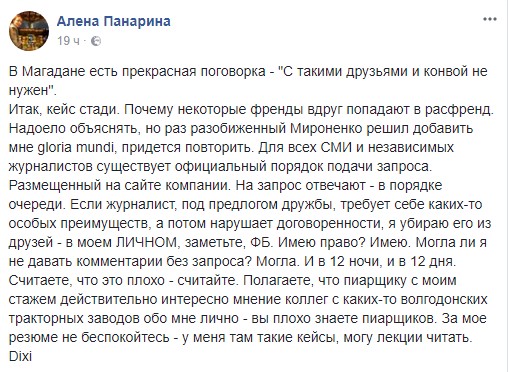 Дополнительное внимание к «Вим-Авиа» привлекло поведение представителя PR-службы авиакомпании в социальной сети в кризисной ситуации. Журналисты выражали недовольство тем, что пресс-служба излишне формально давала комментарии. Например, Алена Панарина предлагала всем заинтересованным СМИ направлять официальные запросы и ждать своей очереди.
