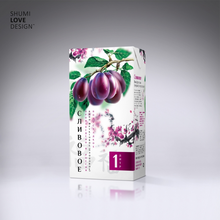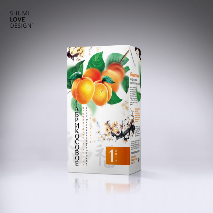 Светлый фон дарит легкость и воздушность, а вертикальное написание слов в сочетание с иероглифами подчеркивает связь с исторической родиной фруктового вина – Китаем, где оно появилось более 5000 лет назад.