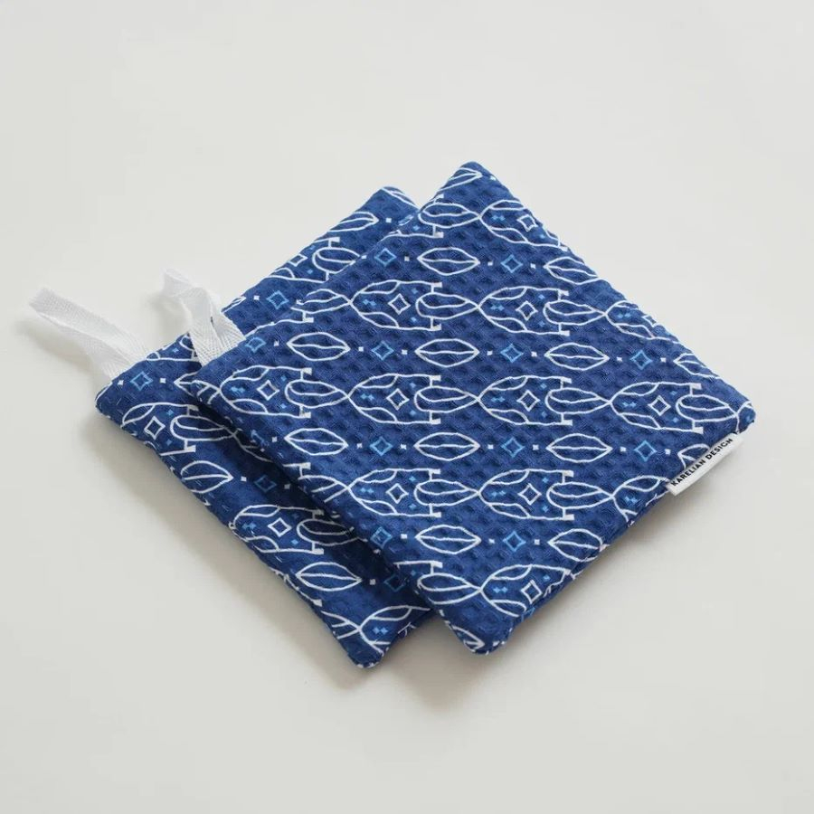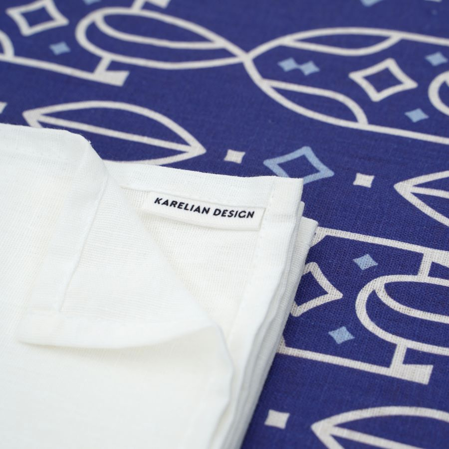 Коллекция отличается выбором глубоких природных цветов, таких как синий и зеленый, что органично соотносится с образом Карелии. Особенно ценно, что орнаменты можно интерпретировать по-разному, но они все равно возвращают нас к традиционным символам — прялке, рыбе, женскому ремеслу. Такой подход делает культурный код узнаваемым и актуальным.