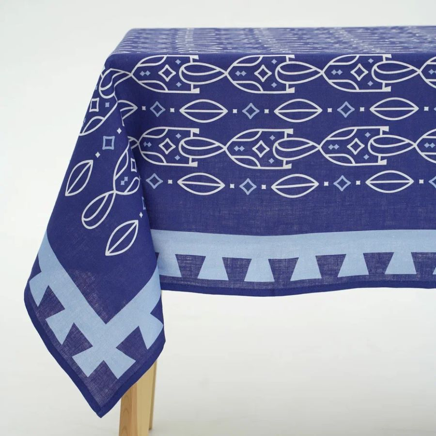 В коллекцию вошли скатерти, салфетки, дорожки, фартуки, прихватки и кухонные полотенца. Все изделия выполнены из льна.