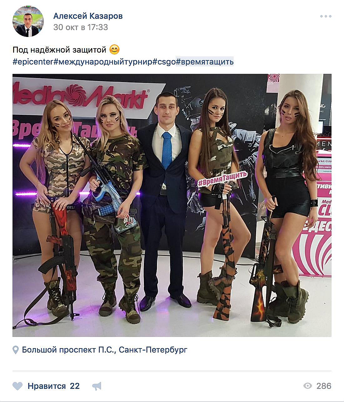 Мы первыми среди российских брендов, которые инвестируют в киберспорт, разработали активности в самом турнире CS:GO. Например, сделали косплей-оружие, которое носили промо-модели. Оно было настоящим, страйкбольным: каждый экземпляр выполнен из металла и весит около 5 кг.