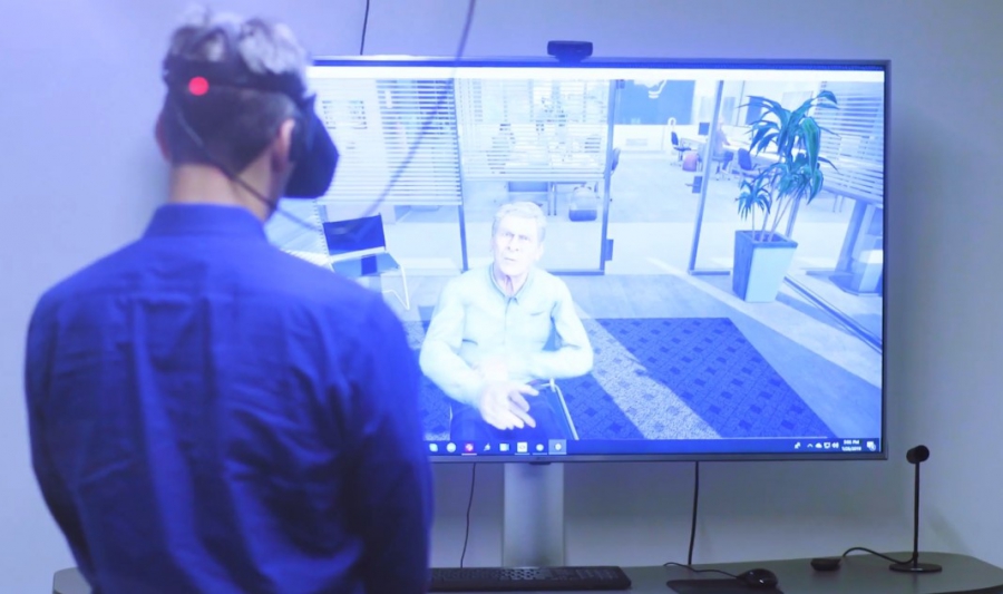 Мужчина появляется в кабинете, когда человек надевает очки дополненной реальности. Американская компания Talespin создала его, чтобы научить менеджеров мягким методам управления и способам решения конфликтов в коллективе, сообщает MIT Technology Review.