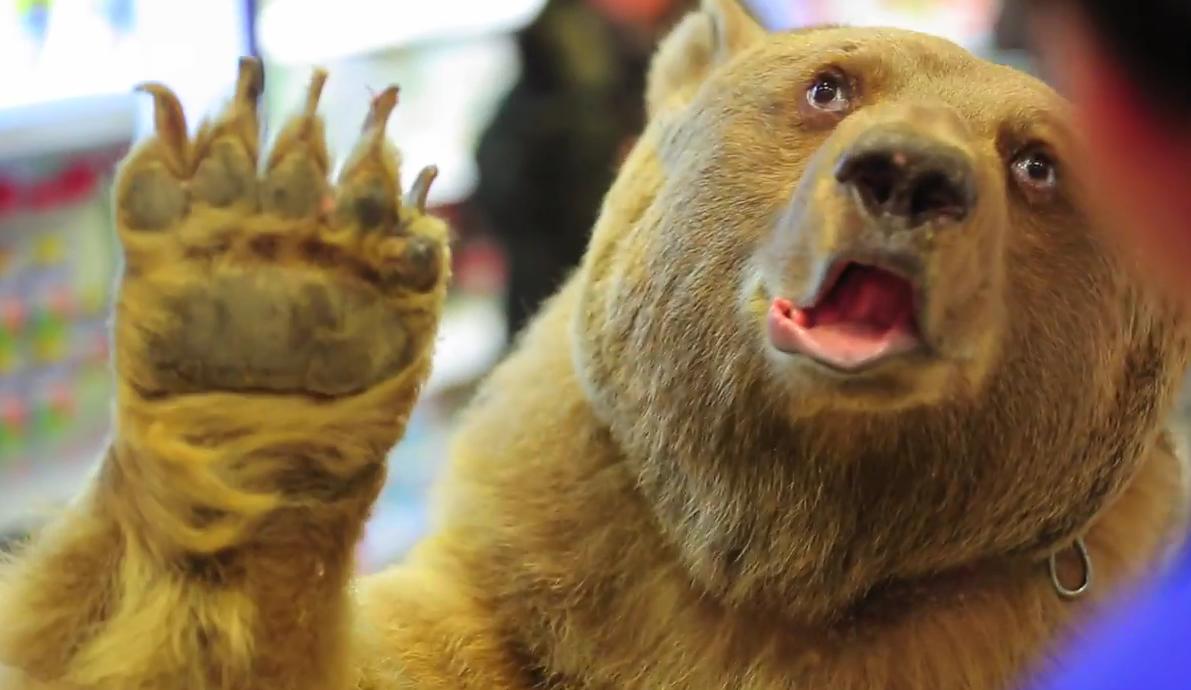 Кульминацией праздника стало появление в магазине самого настоящего медведя, который показывал фокусы, а после полакомился сметаной «Простоквашино» прямо с прилавка. В подписи к видео разработчики предупредили зрителей: «Не пытайтесь повторить дома ничего, кроме поедания блинов!»