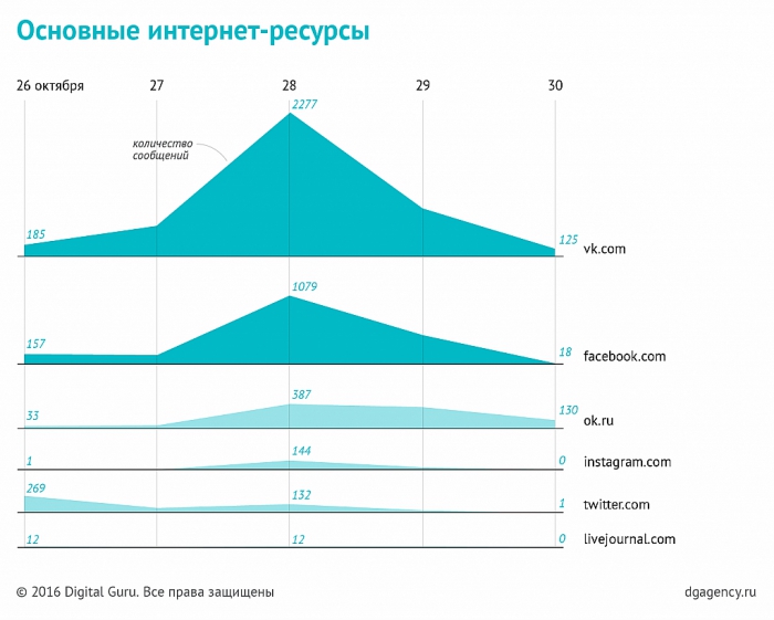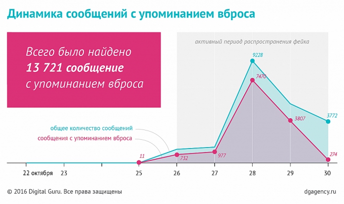 Разгар атаки пришелся на 28 октября. Произошло «заражение» обычных пользователей, достигнут пик обсуждений фейковой новости. Первая реакция со стороны компании последовала 26 октября. Представители ВБД отрабатывали каждое сообщение, в зависимости от характера публикации текст опровержения мог варьироваться. 29–30 октября активное обсуждение вброса пошло на спад.