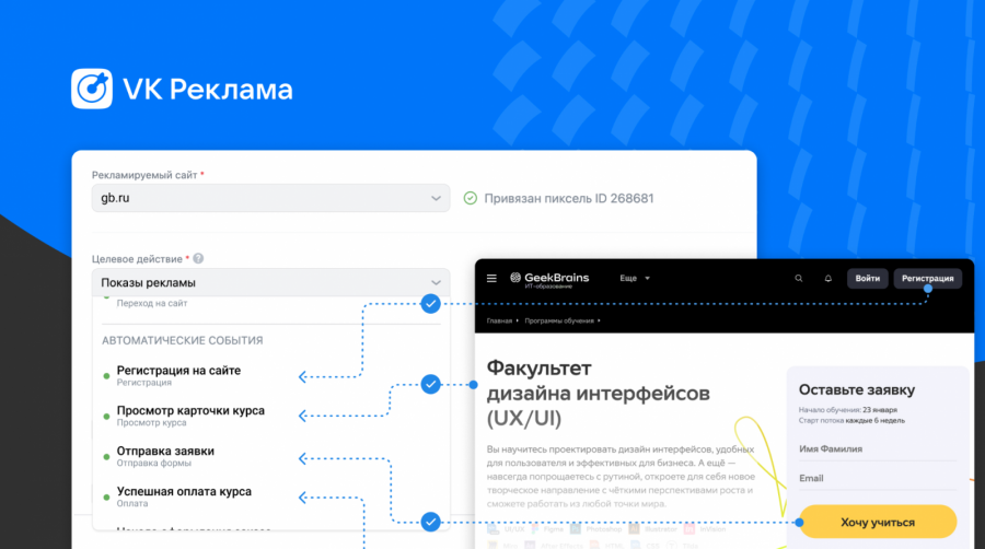 В компании отметили, что данные помогают решать две задачи: задавать цели продвижения и формировать аудиторные сегменты пользователей. В кабинете платформы автоматически отобразятся доступные события для оптимизации продвижения. Модели «VK Рекламы» покажут объявления тем пользователям, которые вероятнее совершат выбранное целевое действие.