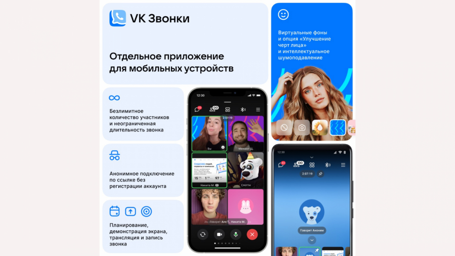 Приложение «VK Звонки» расширяет возможности для организаторов онлайн-мероприятий. В нём можно организовывать как масштабные форумы и конференции, так вебинары и корпоративные собрания на тысячи сотрудников, подчеркнули в компании. Подключиться к звонку можно без аккаунта в соцсети.