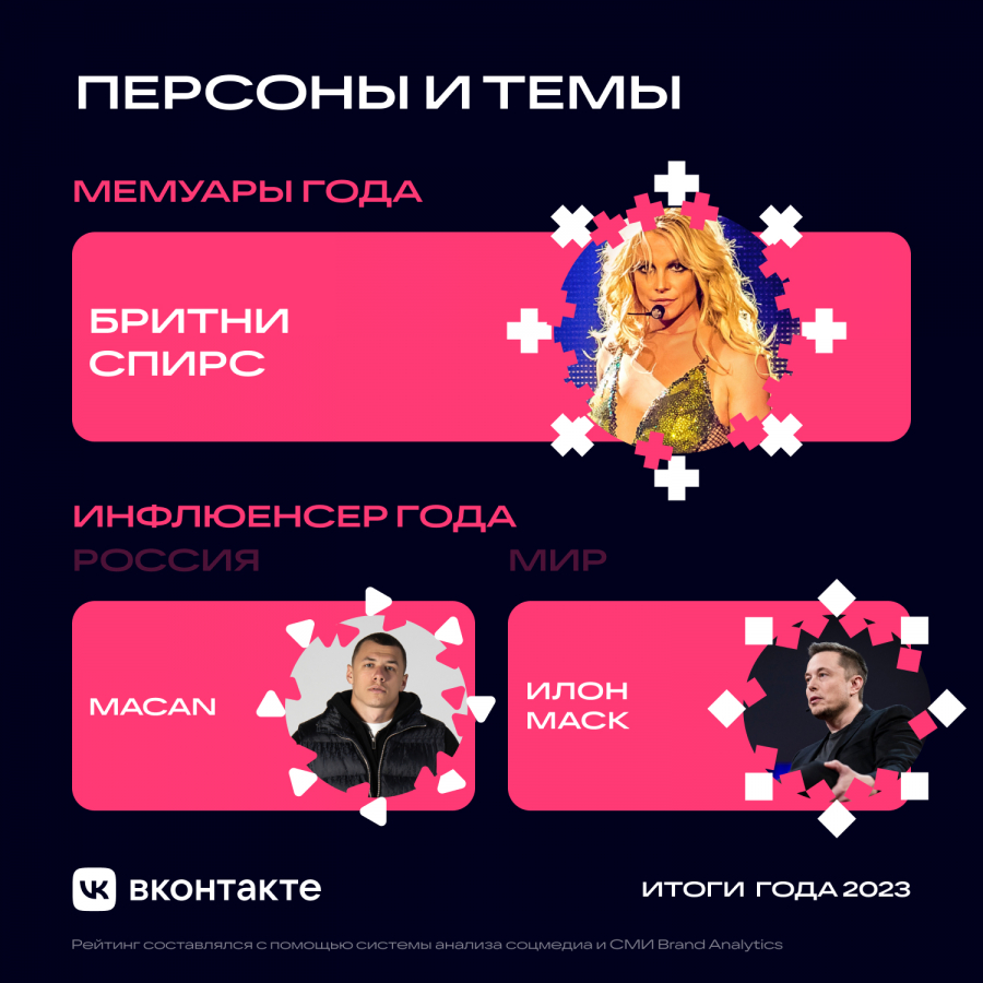 Социальная сеть «ВКонтакте» совместно с Brand Analytics подводит итоги уходящего года и рассказывает, какие персоны и темы привлекли внимание пользователей в 2023-м. Площадка представила рейтинг, в который в том числе вошли самые обсуждаемые инфлюенсеры, фильмы и сериалы, игры и азиатский контент. Результаты анализа трендов есть в распоряжении Sostav.