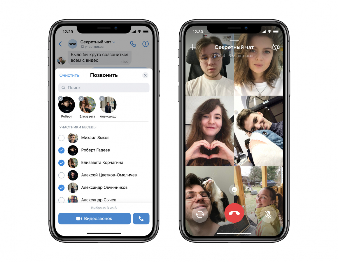 Функция доступна в последней версии приложения. Для начала разговора нужно выбрать подходящую беседу, нажать на иконку трубки и выбрать, кого из чата пригласить в звонок. Добавить собеседника можно будет и во время общения.