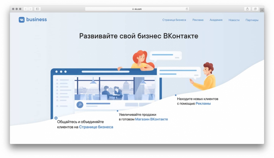«ВКонтакте» также анонсировала платформу для бизнеса, которая включает в себя портал VK Business, образовательную программу «Академия ВКонтакте» и поддержку предпринимателей — до конца года соцсеть выделит 100 млн рублей на развитие малого и среднего бизнеса в России.