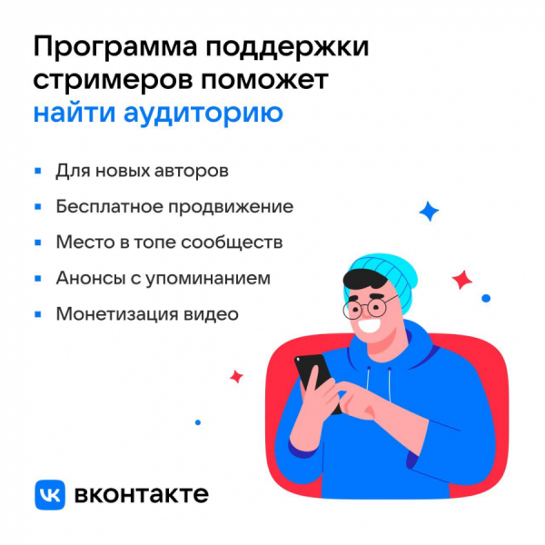 Стримерам, которые ранее не вели страницы в соцсети, на месяц предоставят место в топе сообществ в категории «Блогеры», а их проекты будут анонсировать в сообществе VK Video Creators. Воспользоваться помощью в продвижении смогут авторы, которые присоединились или вернулись во «ВКонтакте» с 1 марта 2022 года.