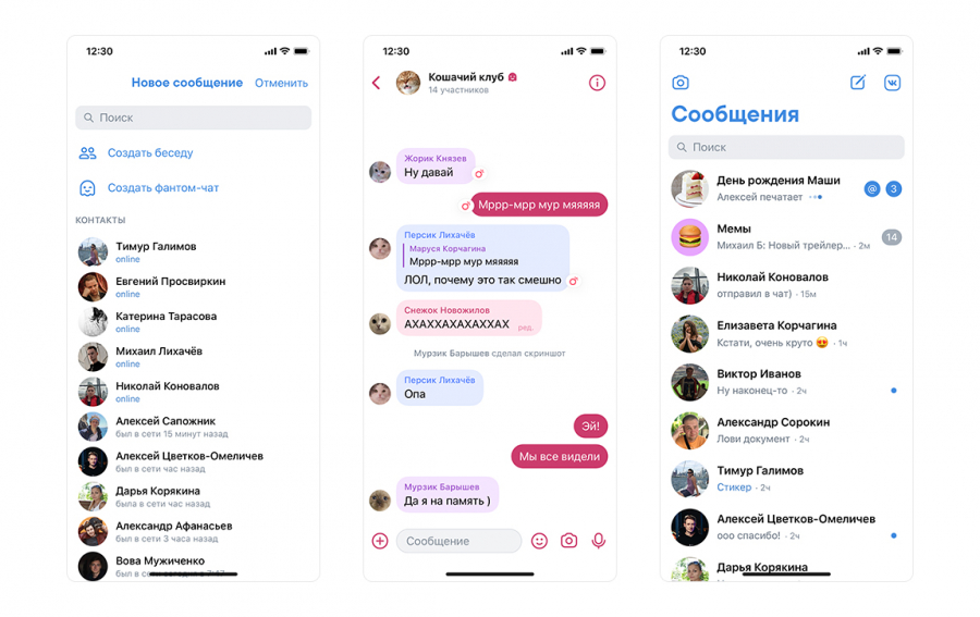 - возможность назвать близких в мессенджере так, как хочется, а не как они записаны в VK.