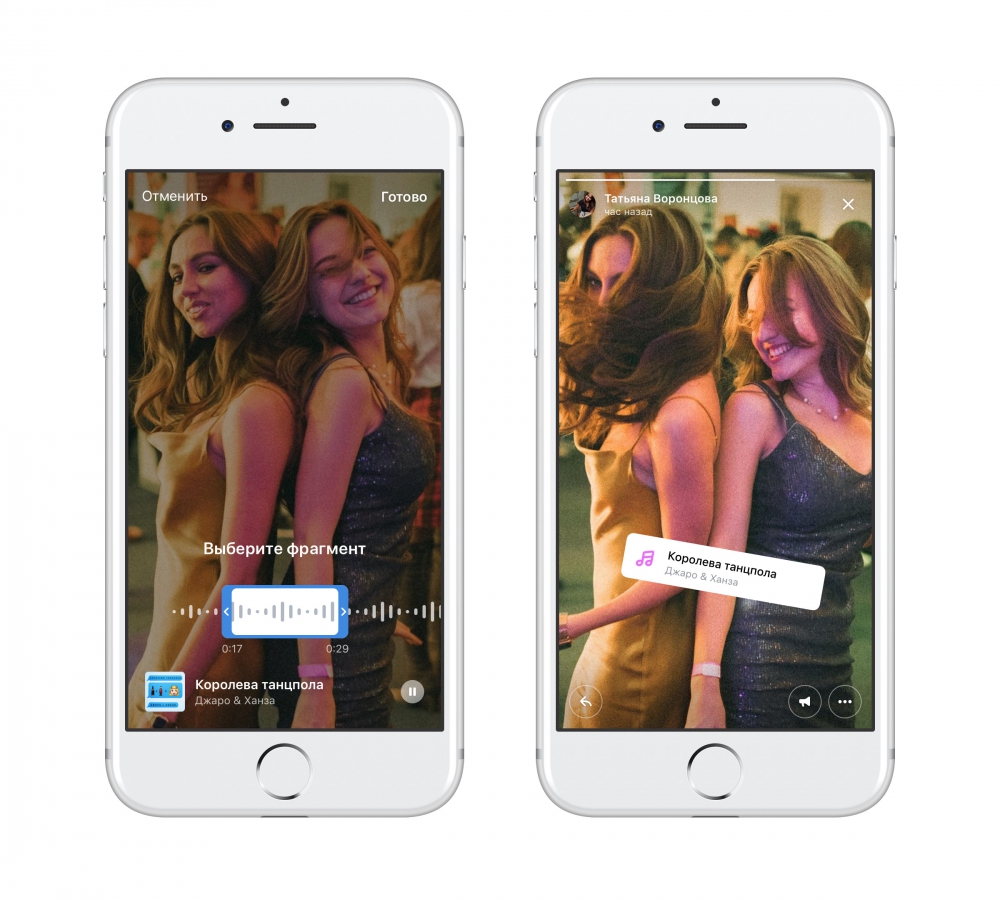 С музыкальными стикерами делиться песнями можно максимально ярко и в своём стиле. Друзья увидят, как вы подпеваете и танцуете под любимую музыку, а ещё смогут легко добавить трек себе в плейлист или отправить его знакомым. Истории становятся окном в огромный каталог популярной музыки.