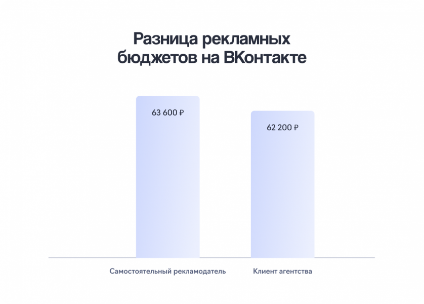 Специалисты eLama отмечают, что во «ВКонтакте», в отличие от «Яндекс Директа», средние бюджеты самостоятельных рекламодателей и компаний, работающих с подрядчиками, почти не различаются. В первом квартале 2024 года они составили соответственно 63,6 тыс. руб. и 62,2 тыс. руб.