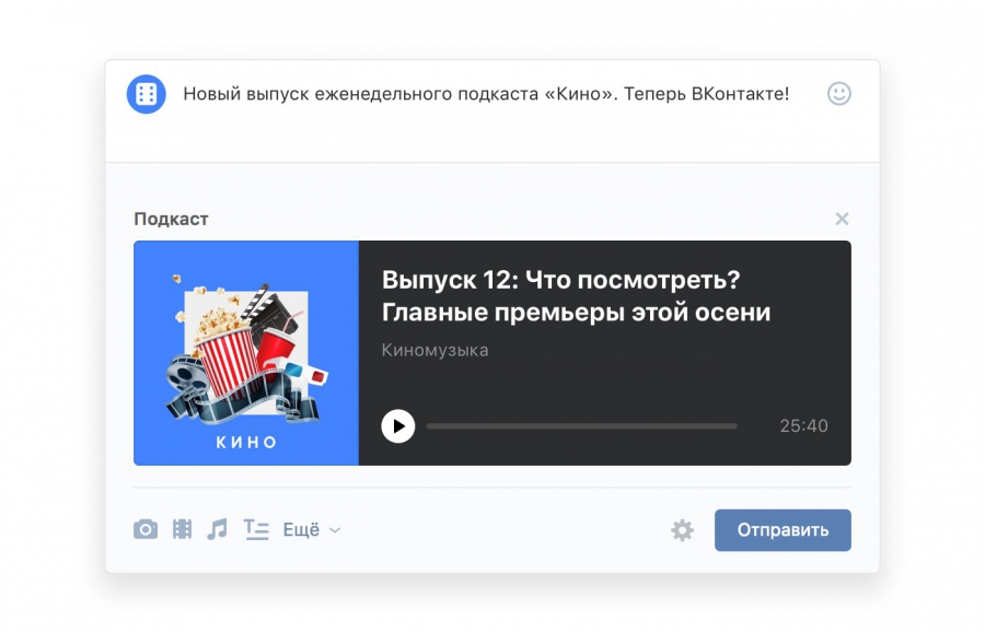 Авторы подкастов смогут размещать выпуски ВКонтакте совершенно бесплатно. Подкастеры получат реакцию слушателей (отметки «Нравится», комментарии, количество поделившихся), подробную статистику, возможности продвижения.