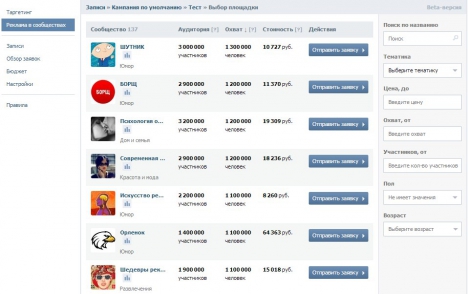 Рекламодателям предлагаются инструменты для управления записями, поиска подходящих сообществ, а также расширенная статистика для расчета эффективности рекламных кампаний.