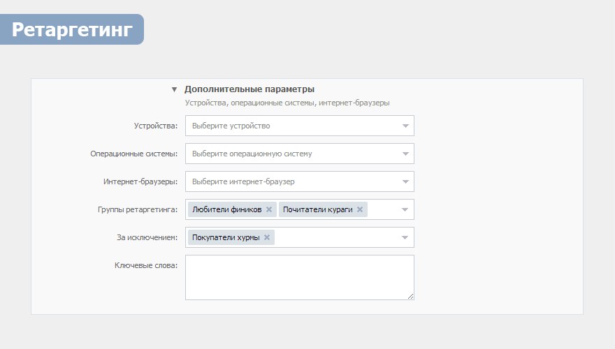 Если рекламодатель имеет данные о своих клиентах (email-адреса, номера телефонов, id ВКонтакте), он может импортировать их в группу ретаргетинга через интерфейс сайта или при помощи API.