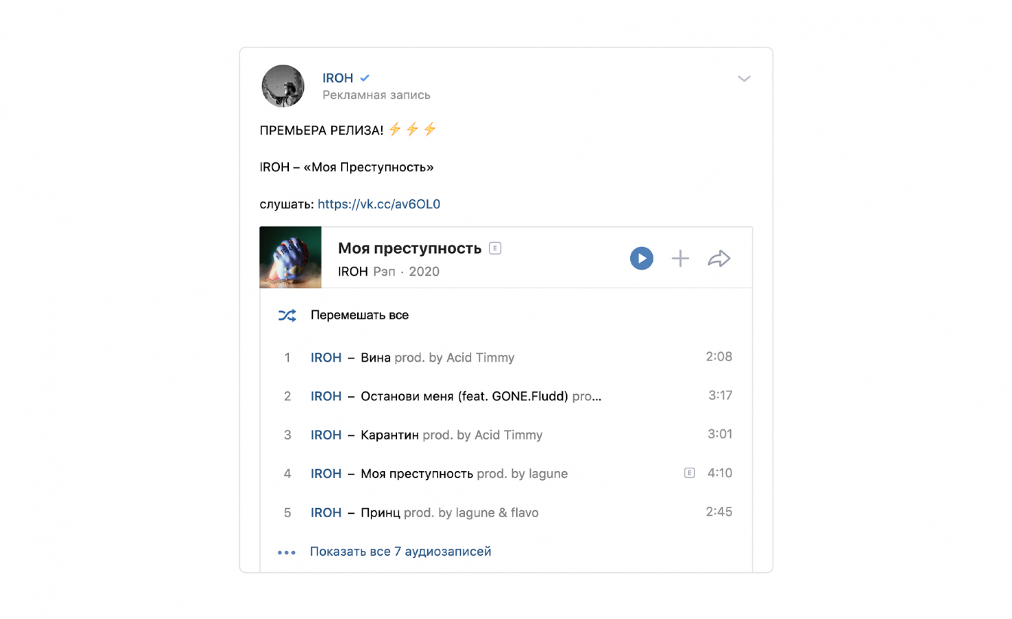 «ВКонтакте» запустила таргетинг на пользователей, которые слушают ту или иную музыку. Об этом Sostav рассказали представители соцсети.
