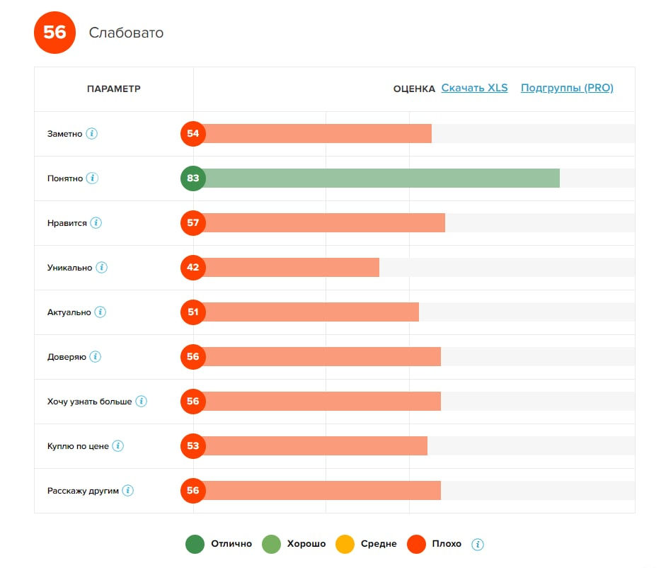 Упаковка получила 56 баллов из 100. В сравнении с другими продуктовыми дизайнами, протестированными на Fastuna за всё время, результат оказался ниже среднего.