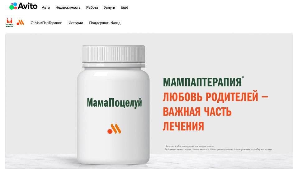 На платформе компания разместила баннеры с «пилюлями» — «МамаОбними», «МамаПоцелуй», «МамаПожалей», «ПапаПочитай» и «ПапаУспокой» подражают карточкам товаров. Кликнув на баннеры, пользователи попадают на лендинг, где смогут изучить трогательные истории родителей подопечных фонда.