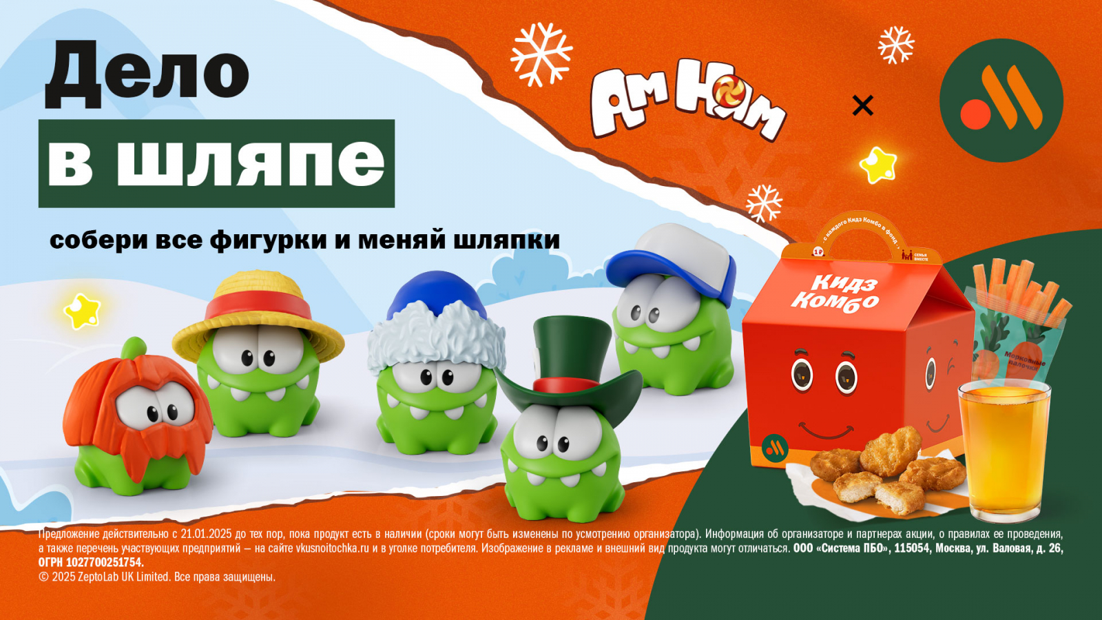 В январе героем коллекции игрушек «Кидз Комбо» от «Вкусно — и точка» стал монстрик-сладкоежка Ам Ням — культовый персонаж популярного мультсериала «Приключения Ам Няма» и игры-головоломки Cut The Rope (с англ. — «Перережь веревку»). В его честь была запущена кампания «Кидз Комбо Ам Ням», созданная в сотрудничестве с