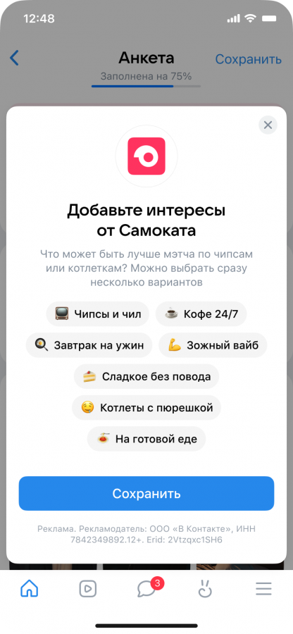 Совпадение вкусов в еде — это всегда плюс к атмосфере. «VK Знакомства» и «Самокат» объединились, чтобы люди с похожими вкусами могли быстрее найти друг друга и начать общение.