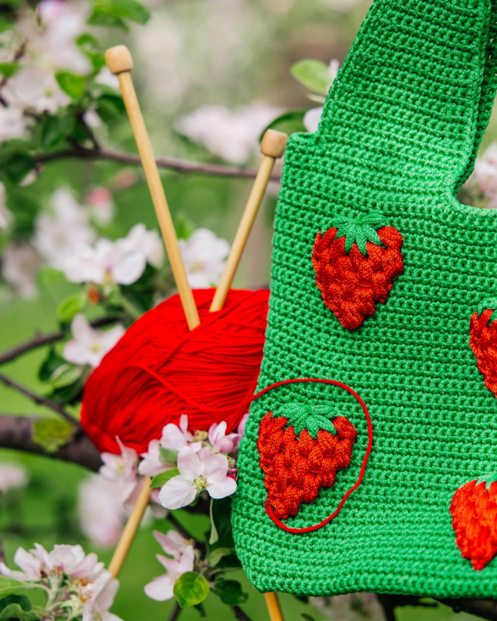 Клубничный сезон «ВкусВилл» открывает не только свежими ягодами, но и лимитированной коллекцией вязаных шоперов. Сеть выпустила совместный мерч с социальным проектом Russian Grannies — сумки ручной работы, вдохновленные летним урожаем.