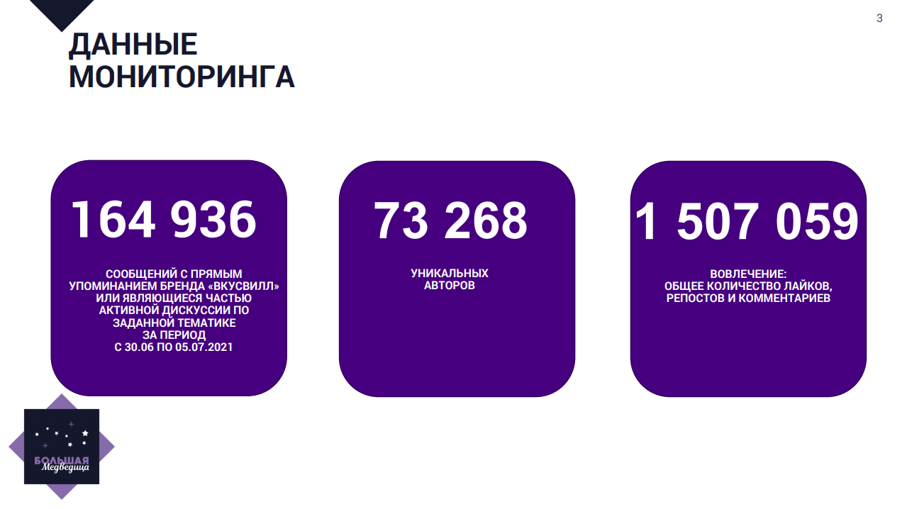 С момента публикации промо 30 июня по 6 июля пользователи упомянули «ВкусВилл» почти 165 тыс. раз. Система зарегистрировала 73 тыс. уникальных пользователей, а общая активность в виде лайков, комментариев и репостов по теме превысила 1,5 млн.