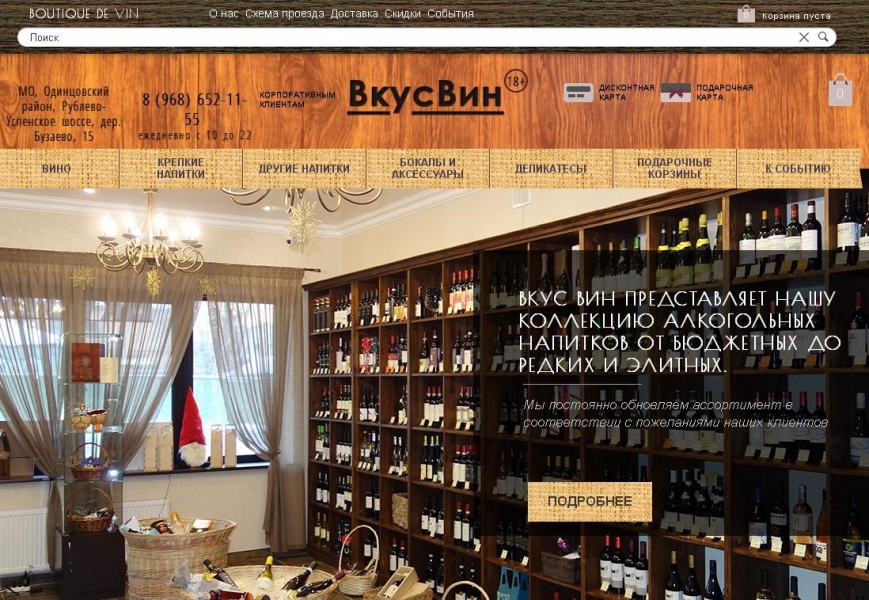 Отметим, что под таким же торговым знаком работает винный бутик на Рублёвке, предлагающий большой выбор алкогольных напитков от бюджетных до редких и элитных.