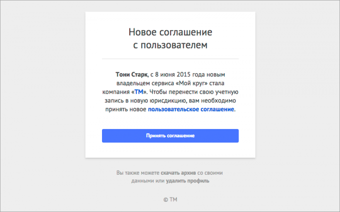 Обновленный «Мой круг» находится в стадии бета-тестирования. Чтобы его попробовать, необходимо принять пользовательское соглашение и обновить личные данные, тогда они переедут с серверов «Яндекса» к «ТМ».