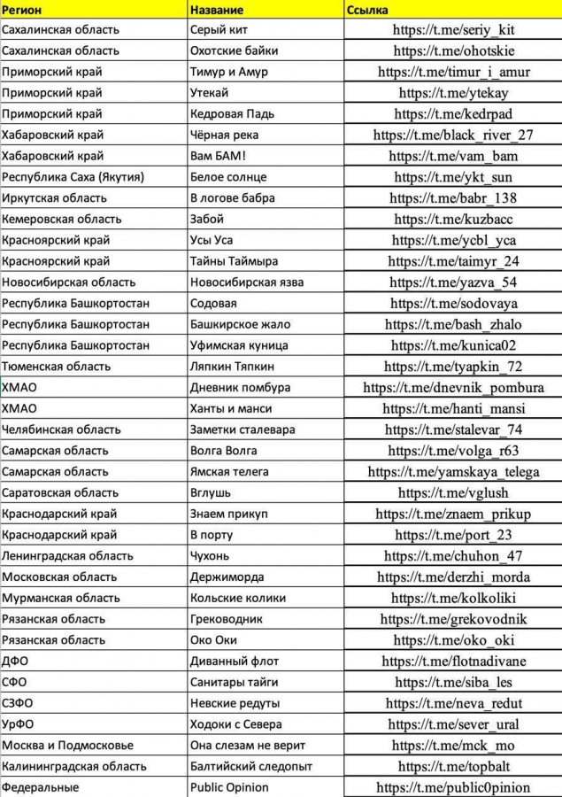 Baza и Brief сообщают, что по предварительным данным, речь идёт о задержании владельцев и администраторов 37 региональных каналов, как «Держиморда», «Уфимская куница», «Ляпкин Тяпкин», «Диванный флот», «Она слезам не верит», «Ходоки Севера» и многих других.