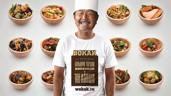 За основу названия службы доставки было взято слово, которым часто называют порцию лапши – «вок». Для того, чтобы добавить в название эмоций, креаторы решили соединить его со словом «как» и добавить восклицание. Получилось «Вокак!». Также в агентстве разработали специальную коробку, в которой лапша надолго остается горячей. Внутренняя поверхность упаковки отражает инфракрасный диапазон невидимого спектра, а в стенке предусмотрена воздушная прослойка. Кроме того, упаковка оснащена ручкой.
