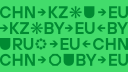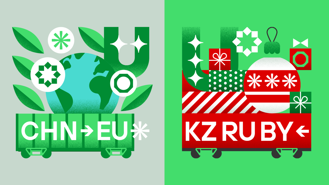 Тема международного формата бизнеса раскрывается и в фирменной графике. В основе образов абстрактных геометричных иконок — узнаваемые символы стран, в которых представлены стратегические партнеры-акционеры. На основе этих символов и фирменного шрифта создаются разные комбинации паттерна, напоминающего маркировку на грузовых контейнерах — визуализация маршрута Китай-Европа, Европа-Китай. Маска в форме символа U следует принципам минимализма, заложенным в ДНК стиля, и поддерживает идею единого пространства для совместного развития технологий, бизнеса, территорий и возможностей.