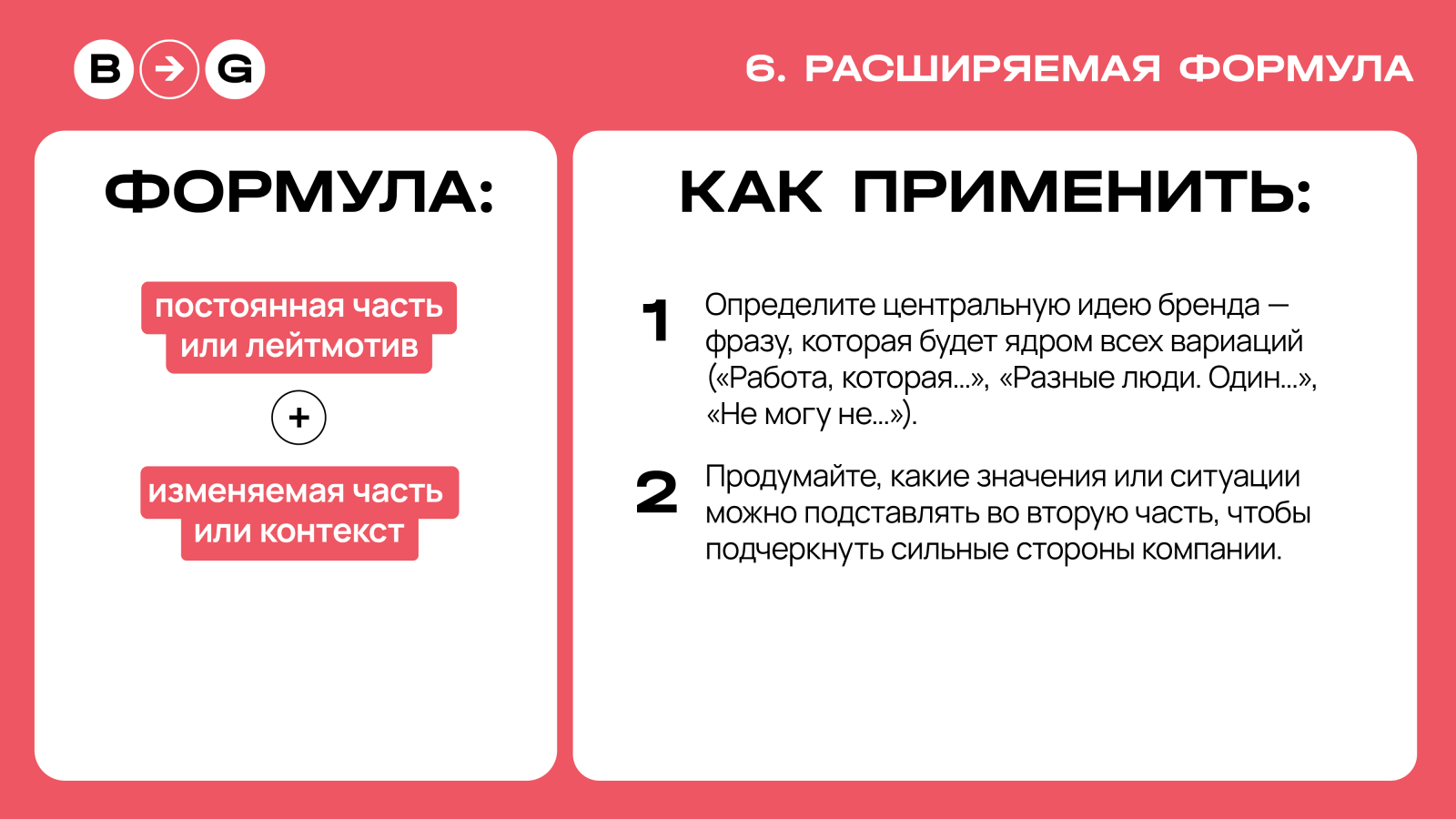 Это слоганы-конструкторы. У них есть ядро — ключевая идея бренда, — и переменная часть, которая подстраивается под контекст. Это позволяет менять акценты под разные аудитории, профессии или медиа. Формула остается узнаваемой, а смысл — каждый раз новый.
